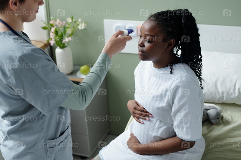 Измерение температуры беременной женщины в больничной комнате
