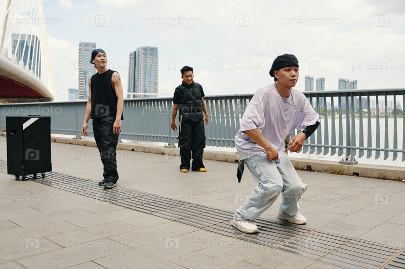 Танцы на свежем воздухе с скейтбордистами возле городской набережной