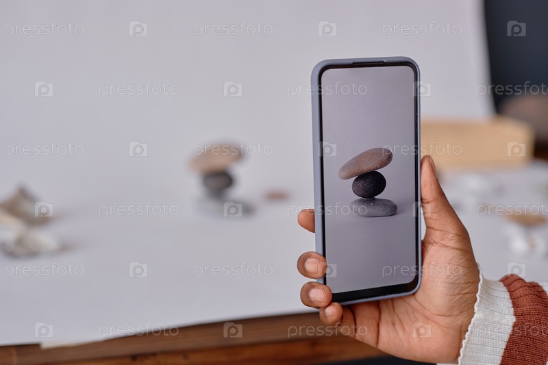 Женская рука, держащая смартфон и фотографирующая