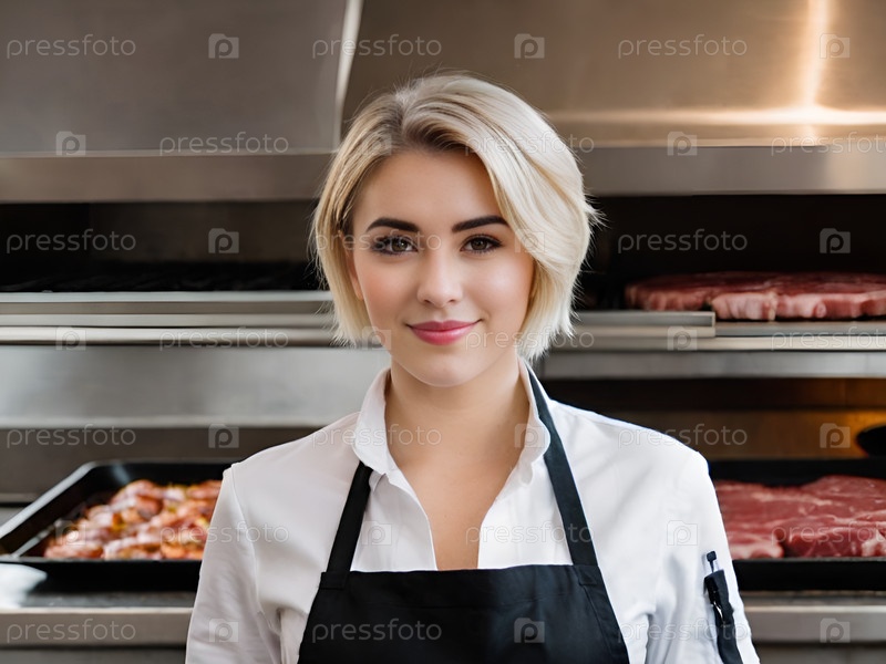Портрет улыбающегося повара в современной кухонной обстановке