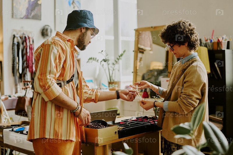 Помощь клиенту с ювелирными изделиями в современном бутике
