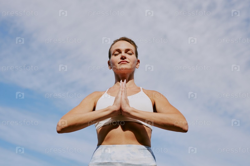 Женщина, медитирующая под открытым небом