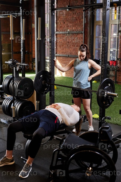 Женщина с инвалидностью во время силовых тренировок