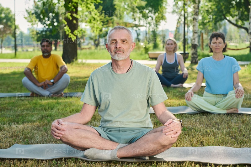 Зрелые люди делают медитационные упражнения