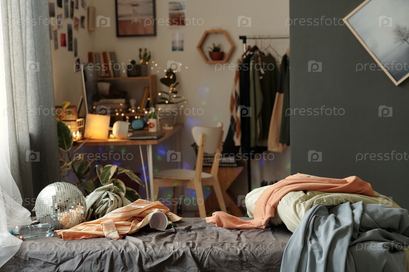 Беспорядочная кровать в домашней комнате
