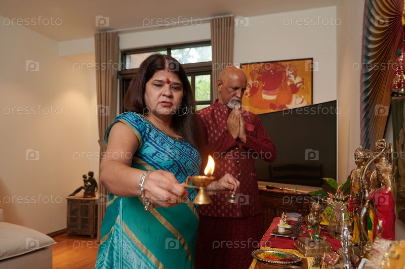 Пара молится у алтаря дома