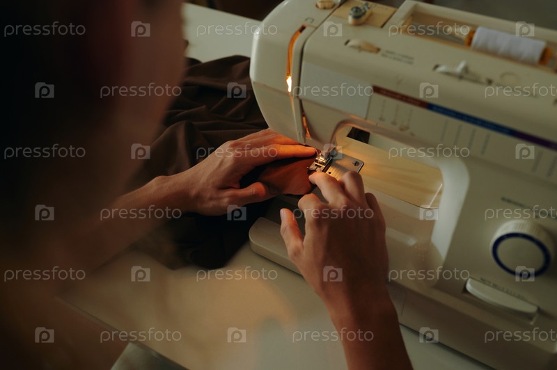 портной, использующий швейную машину на своей работе