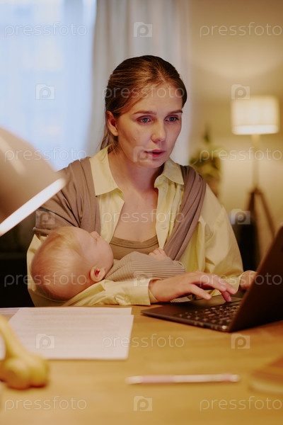 Рабочая мать жонглирует уход за ребенком и профессиональные обязанности дома