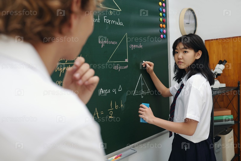 Учащийся, участвующий в дискуссии по геометрии на занятиях в колледже