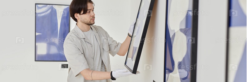 Header Image of Man Hanging Art Pictures Планирование художественной галереи Выставка