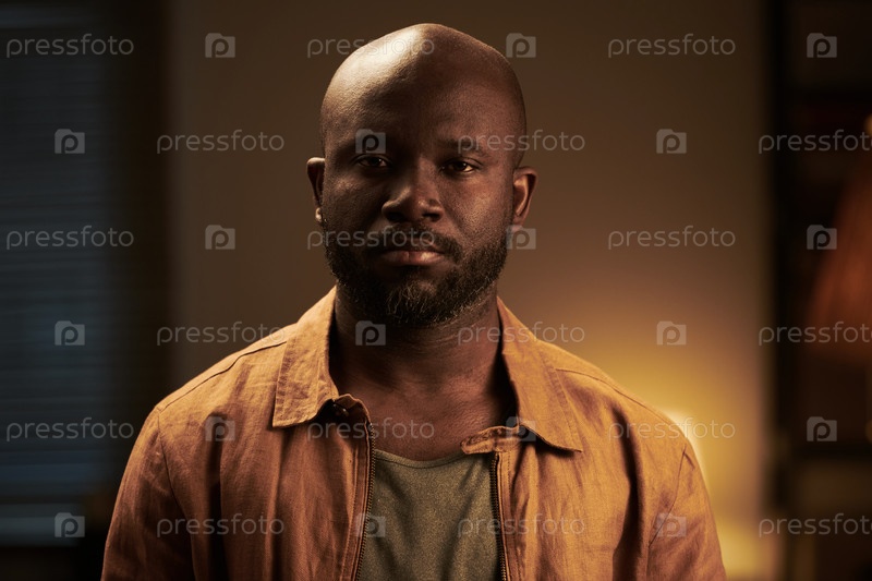 Молодой серьезный лысый мужчина во время ссоры