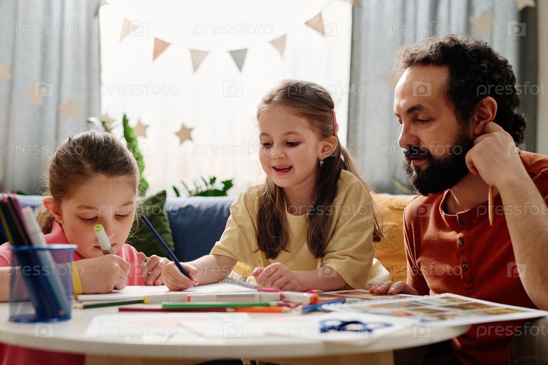 Отец направляет дочерей в проект окраски дома