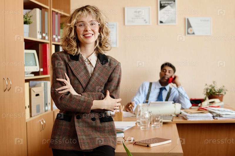 Портрет улыбающейся женщины в профессиональной офисной среде