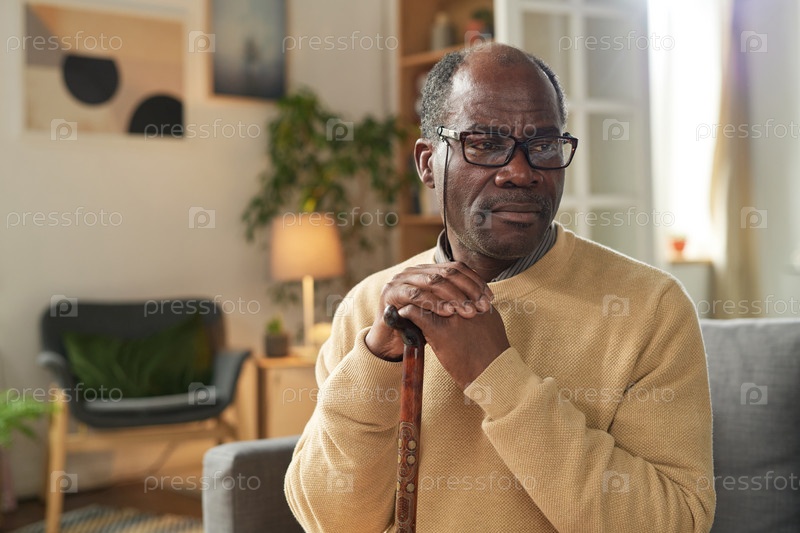 Портрет пожилого человека, держащего трость в гостиной