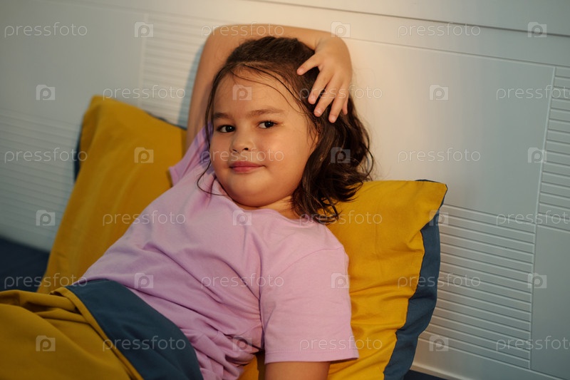 Расслабляясь в своей постели девушка