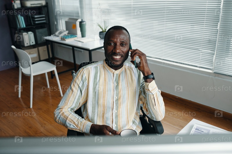 Бизнесмен занят на телефоне в офисе