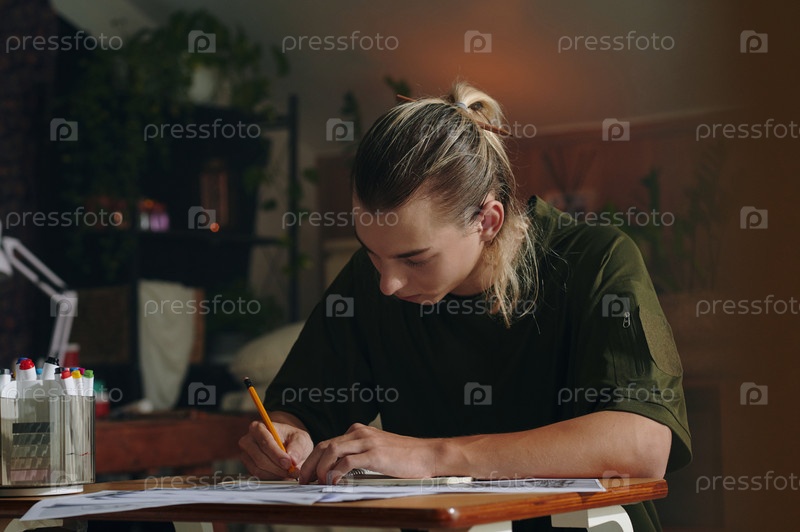 Дизайнер рисует эскизы за столом