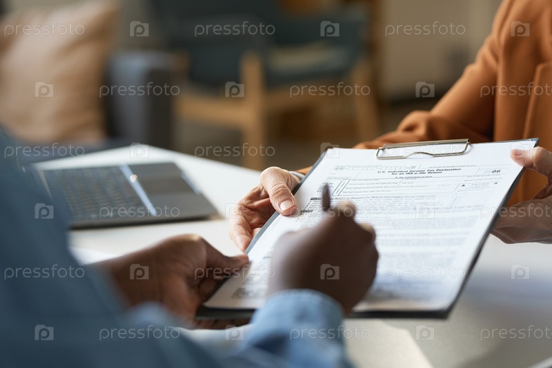 Закрытие женщины, подписывающей налоговую декларацию