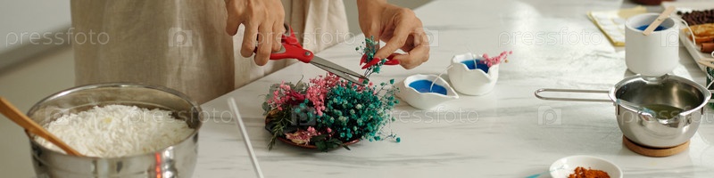Женщина украшает свечи цветами