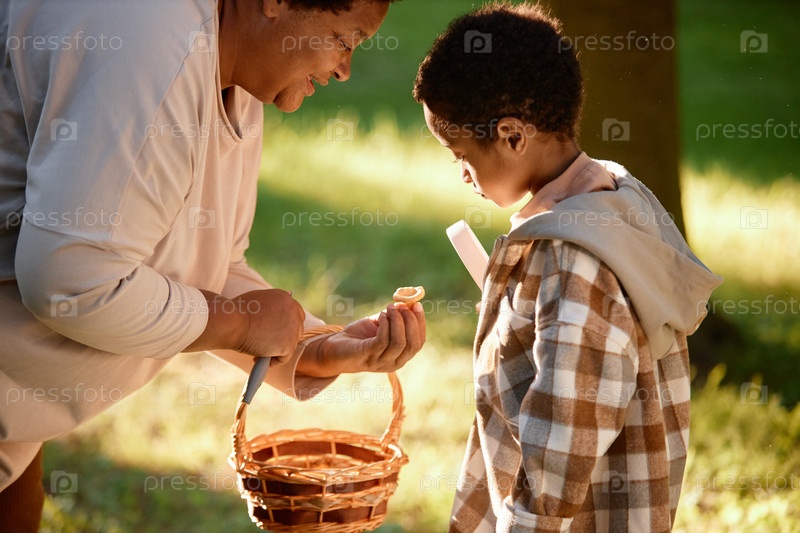 Бабушка показывает грибы
