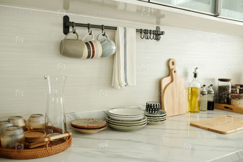 Посуда стоит в порядке на кухне