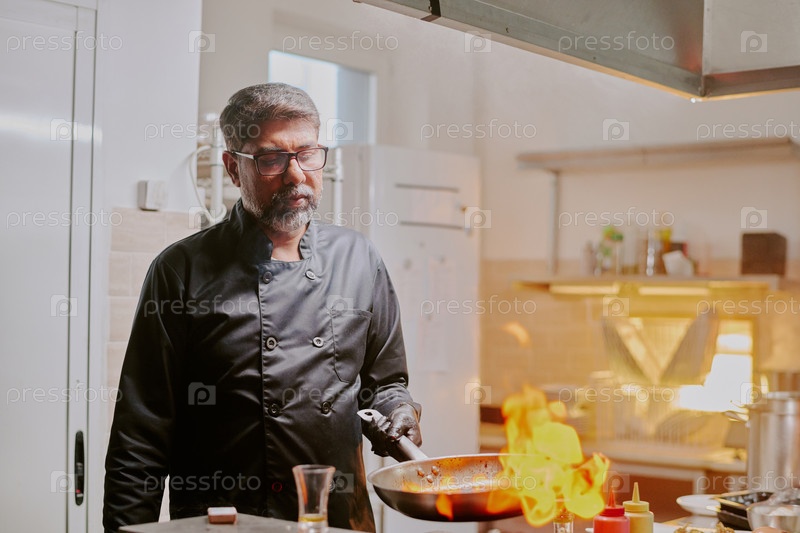 Шеф-повар, готовящий с огнем