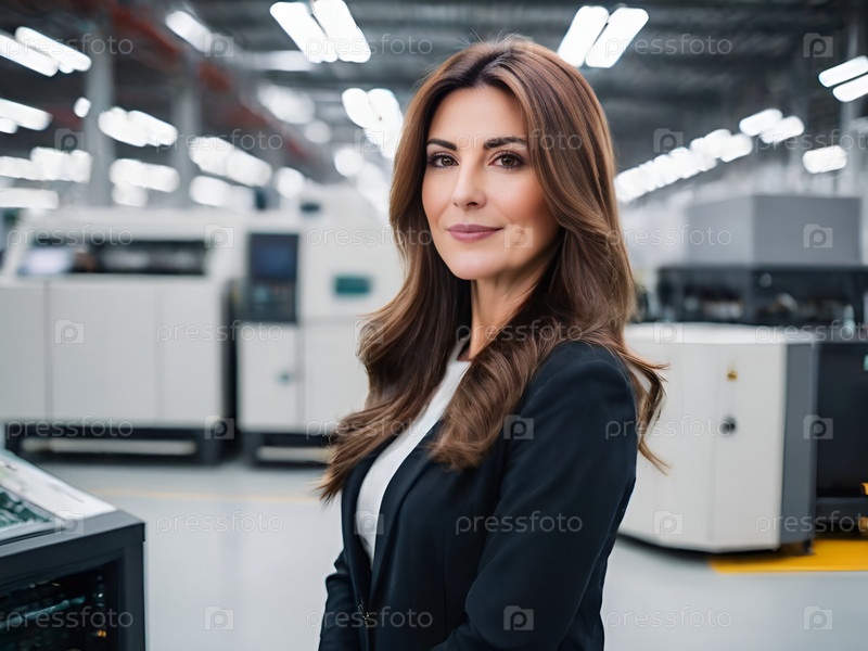 Портрет уверенной в себе женщины, работающей на современных фабриках