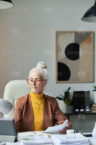 Пожилая женщина, работающая в современной офисной обстановке