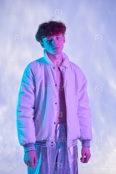 Портрет мужчины в белом куртке на студии