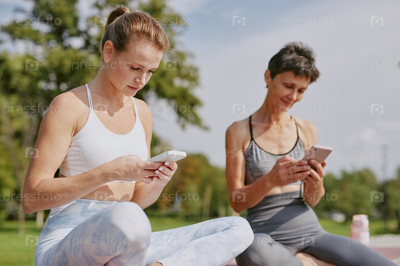 Женщины, серфующие по Интернету под открытым небом