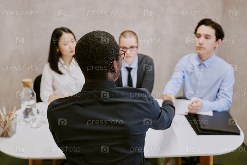 Непризнанный мужчина приветствует менеджеров по персоналу