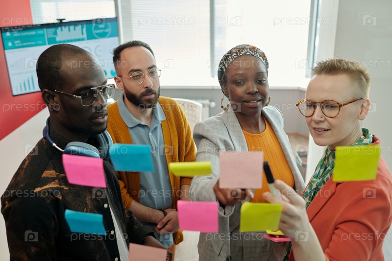 Команда обсуждает стратегии с помощью клейких записок