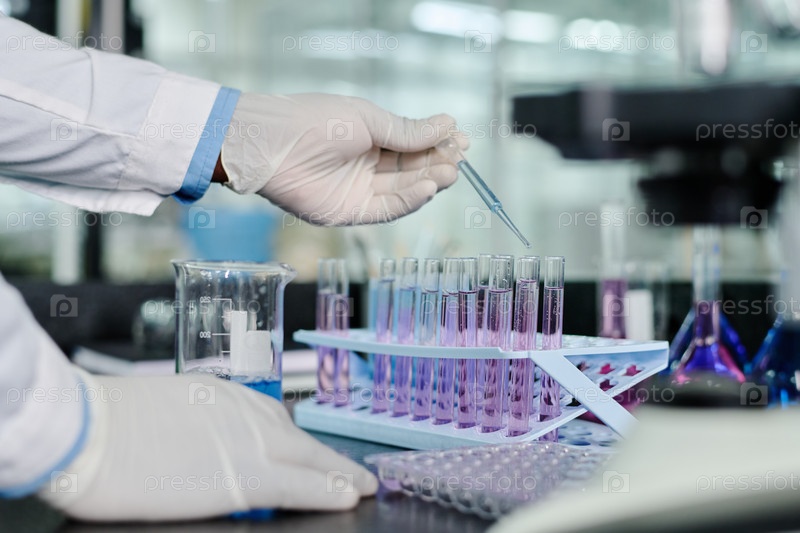 Перчатковая рука клинициста с пипетой