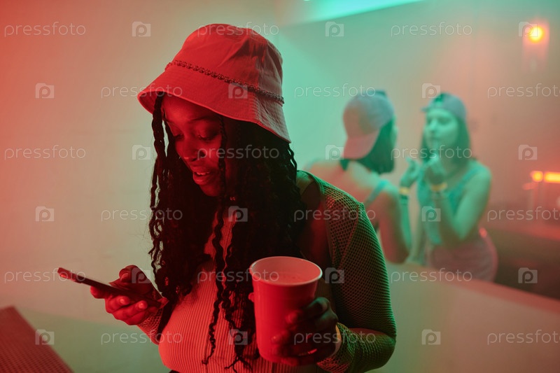 Фанки-девушка отправляет текстовые сообщения со смартфона