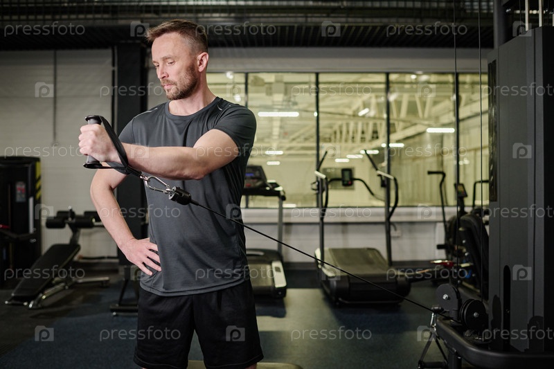 Мужчина занимается в современном фитнес-клубе