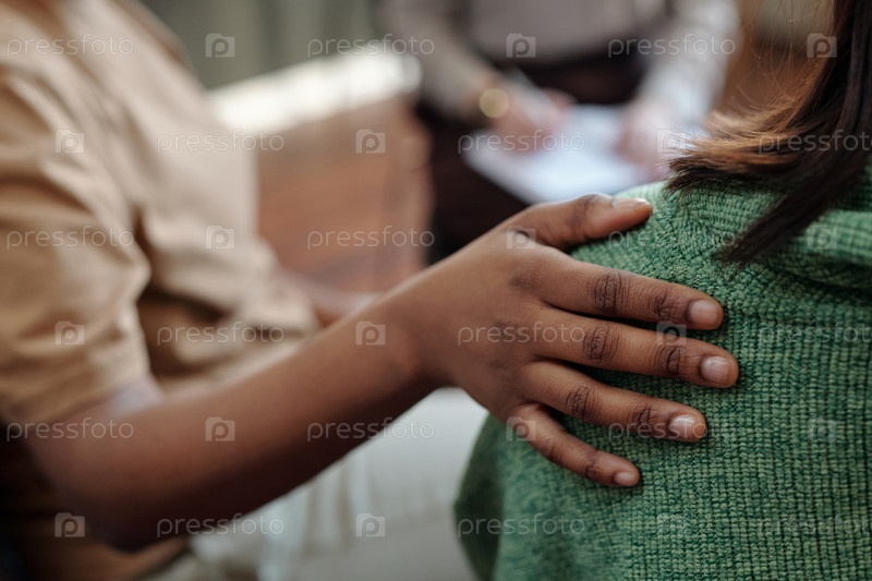 Рука женщины на спине ее друга