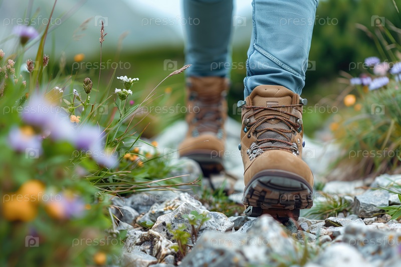 Паломник, исследующий горный путь в походных сапогах