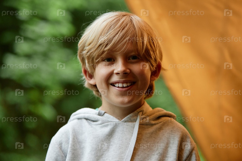 Улыбающийся блондин, носящий серую худи снаружи