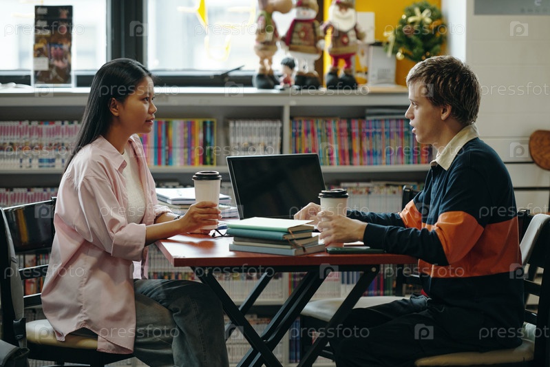 Студенты вместе учатся в библиотеке