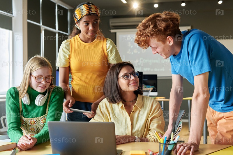 Группа людей, работающих с учителем в классе