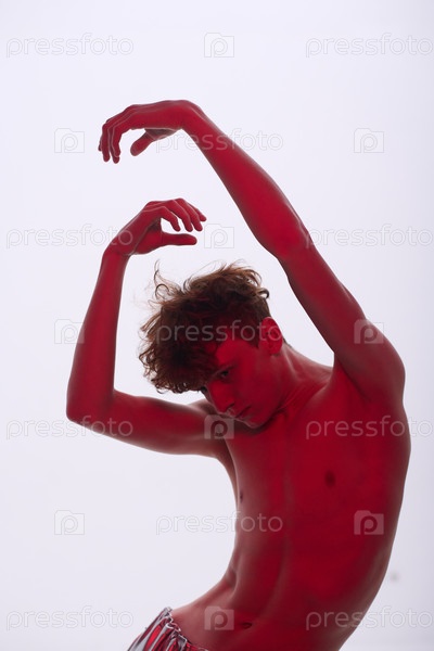 Танцующий мужчина позирует изящно с распростертыми руками