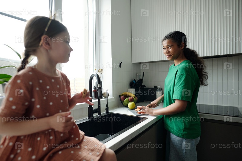 Сиделка, нарезающая свежую морковь для ребенка