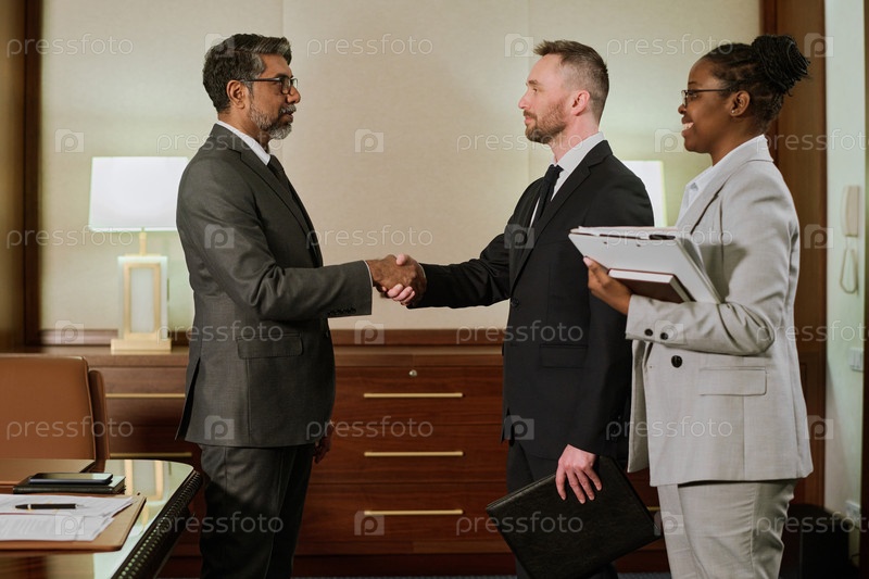 Партнеры, пожавшие друг другу руки после переговоров