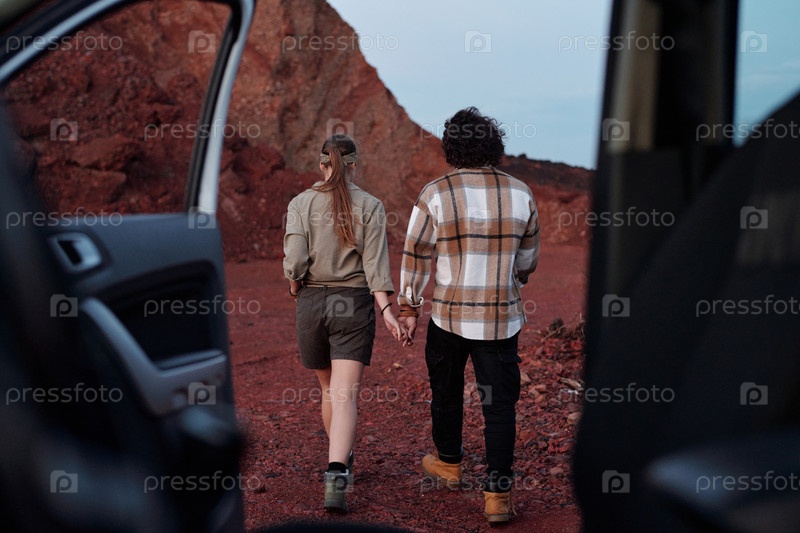 Пешеходы, идущие в сторону высокой горы