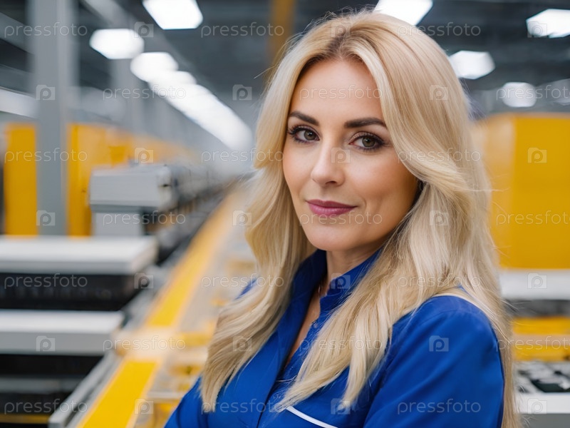 Улыбающаяся женщина работает на производственном заводе