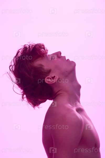 Профиль мужчины, смотрящего вверх В окружении розового освещения