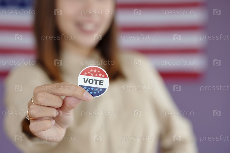 Молодой избиратель с патриотической вывеской