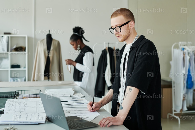 Специалист, делающий заметки или рисуя эскизы