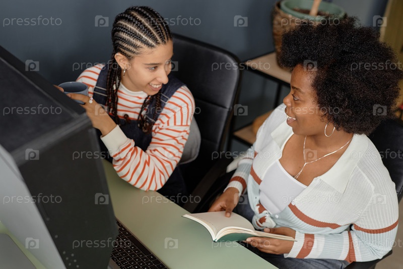 Черные женщины, использующие компьютер Top View Two