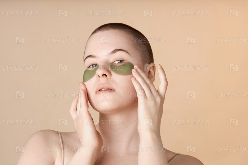 Девушка с увлажняющими повязками под глазами